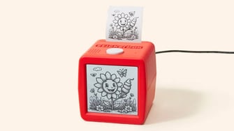 Stickerbox - це не просто іграшка- принтер. Це голосовий чарівник! Натискаєте велику білу кнопку "push-to-talk", шепочете свою ідею - від "дракона, що пече пиріжки" до "кота-астронавта на Марсі" і починається магія. Екран загоряється текстом, ШІ генерує зображення, а термопринтер (без чорнил, до речі, і з безпечним папером без BPS та BPA) видає готову наклейку з малюнком для розфарбування.