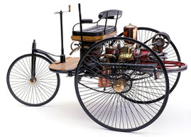 29 січня 1885 року Карл Бенц з Німеччини отримав патент на розробку автомобіля з бензиновим двигуном. Це було триколісне важке авто, яке вміщало двох пасажирів та могло розвивати швидкість до 16 кілометрів на годину. Такий екіпаж отримав назву Motorwagen (Benz Patent Motorwagen TYP I).