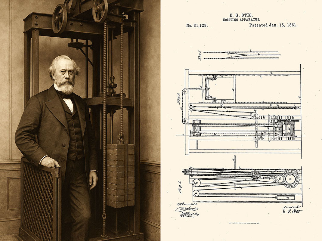 Патент на свій безпечний пасажирський ліфт Еліша Грейвс Отіс отримав у 1861році, за три місяця до своєї смерті, але і сьогодні ліфти та екскалатори Otis від його компанії Otis Elevator Company є найпоширенішими підйомниками в світі.