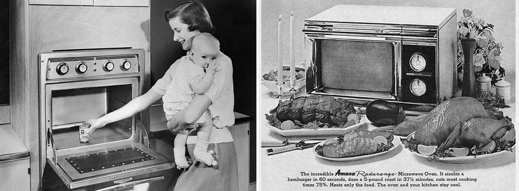 Мікрохвильові пічі Tappan RL-1 (1955р) та Amana (1967р)