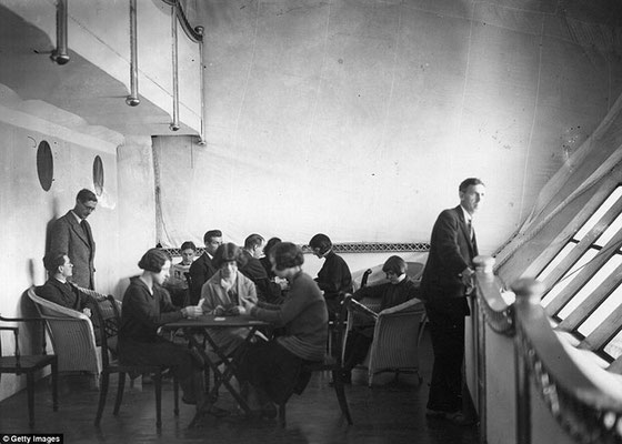 Пасажири на борту дирижабля.