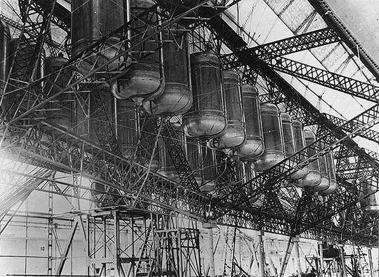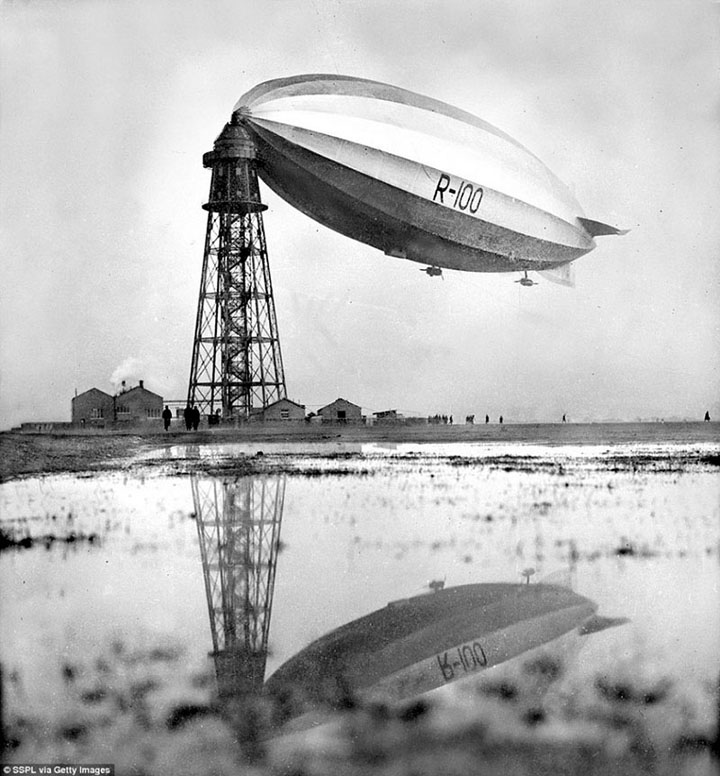 На фотографії нижче будівництво дирижабля R-101 на верфях Royal Airship Works у Кардінгтоні.