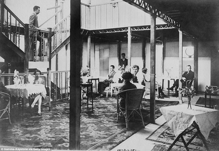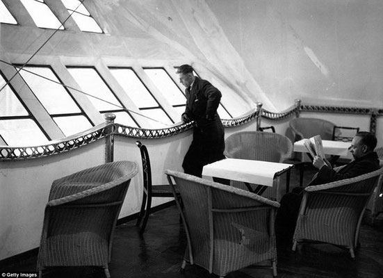 На борту дирижабля «R100» були подвійні сходи, якими пасажири спускалися зі своїх кают в обідню залу.