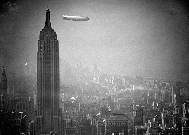 Німецький дирижабль «Гінденбург» пролітає повз хмарочос Емпайр-Стейт-білдінг на Мангеттені на шляху з Німеччини в Лейкхерст, штат Нью-Джерсі, 8 серпня 1936 року. (AP Photo)