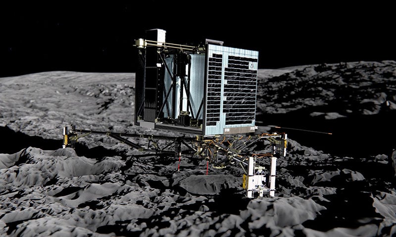 Посадковий модуль Посадковий модуль Philae космічного апарату Rosetta (розробка Європейського космічного агентства) успішно сів на поверхню ядра комети 67Р Чурюмова - Герасименко. Це була перша посадка космічного апарату на поверхні ядра комети за всю історію космонавтики.